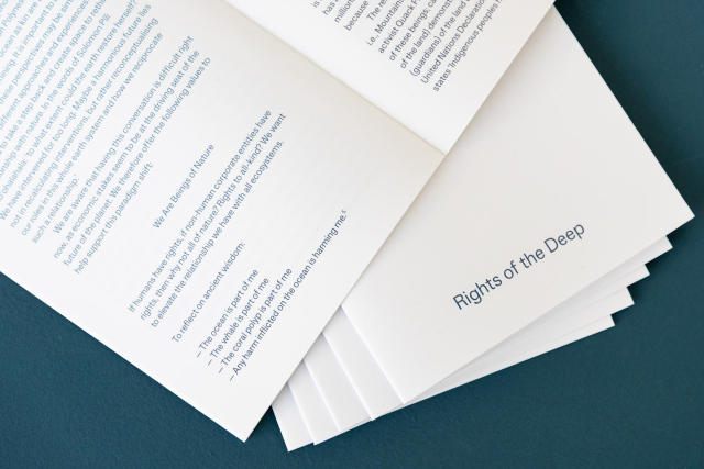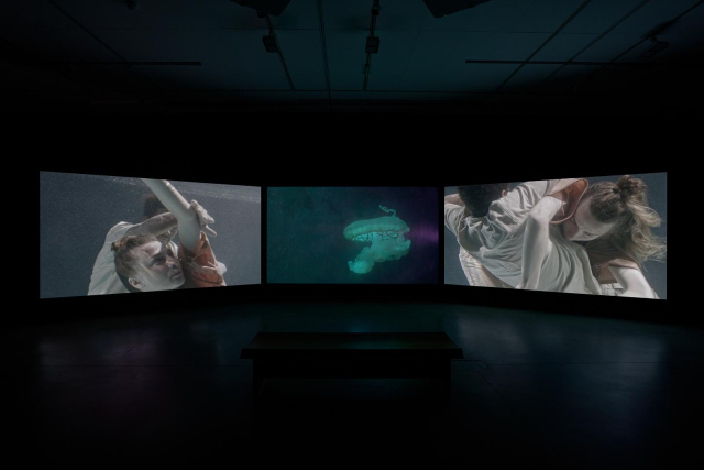Soundings (2025) is a three-screen film work exploring deep-sea mining for minerals from the seabed and its ecological, geopolitical, and cultural impacts. Deep sea locations, soundscapes and voices weave together to take audiences on a journey into the deep. From encounters with deep-sea creatures to ancestral stories of our oceanic origins, the film invites us to reflect on our relationship with the deep ocean. Maps by ocean cartographer Marie Tharp show the first maps ever drawn of the seabed. Amongst the voices, Pacific activists, as well as lawyers, defend the ocean against mining. Some of the survey footage of the seabed (gathered from remotely operated vehicles) is from prospected mining sites in the Pacific. This, together with debates on ocean governance, highlights the complex issue of mining the seafloor.